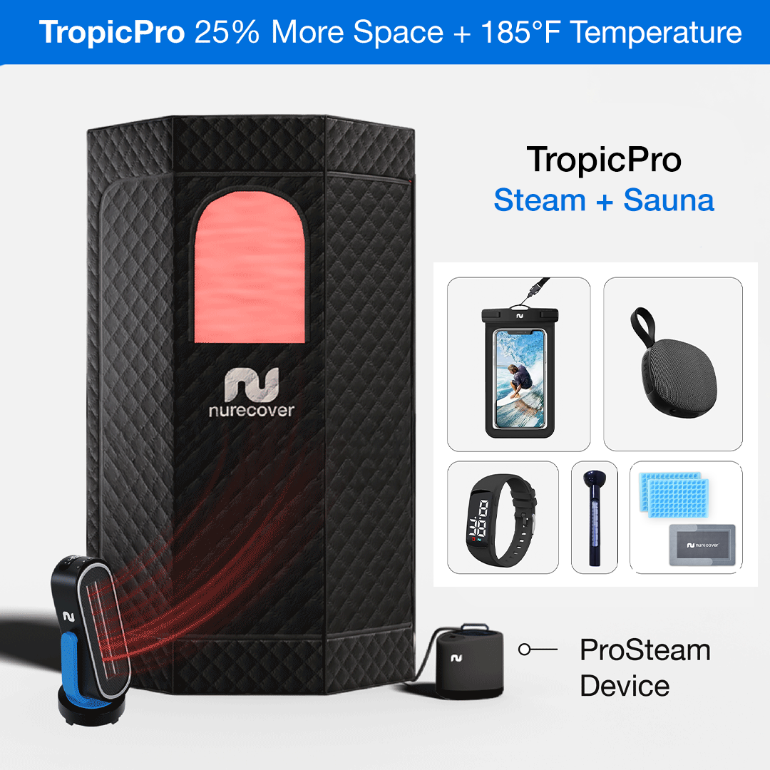 Lätt att underhålla sommarkroppen. Svettas ut extra kalorier, öka din ämnesomsättning och stödja hjärthälsan, samtidigt som du känner dig lättare och mer energisk med Nurecover Tropic Sauna, direkt från hemmet.